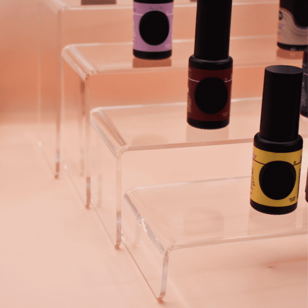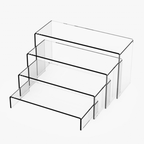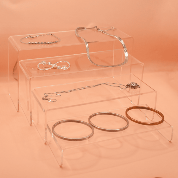 Repisas de acrílico ideales para exhibir y organizar productos pequeños como cosméticos, joyería, accesorios e incluso para un candy bar en eventos. Incluye 4 piezas de las siguientes medidas: